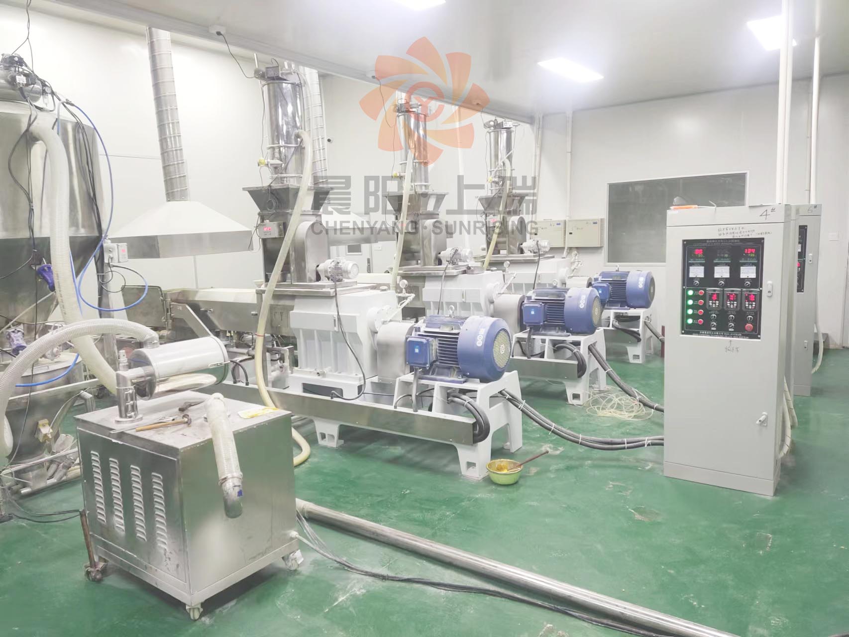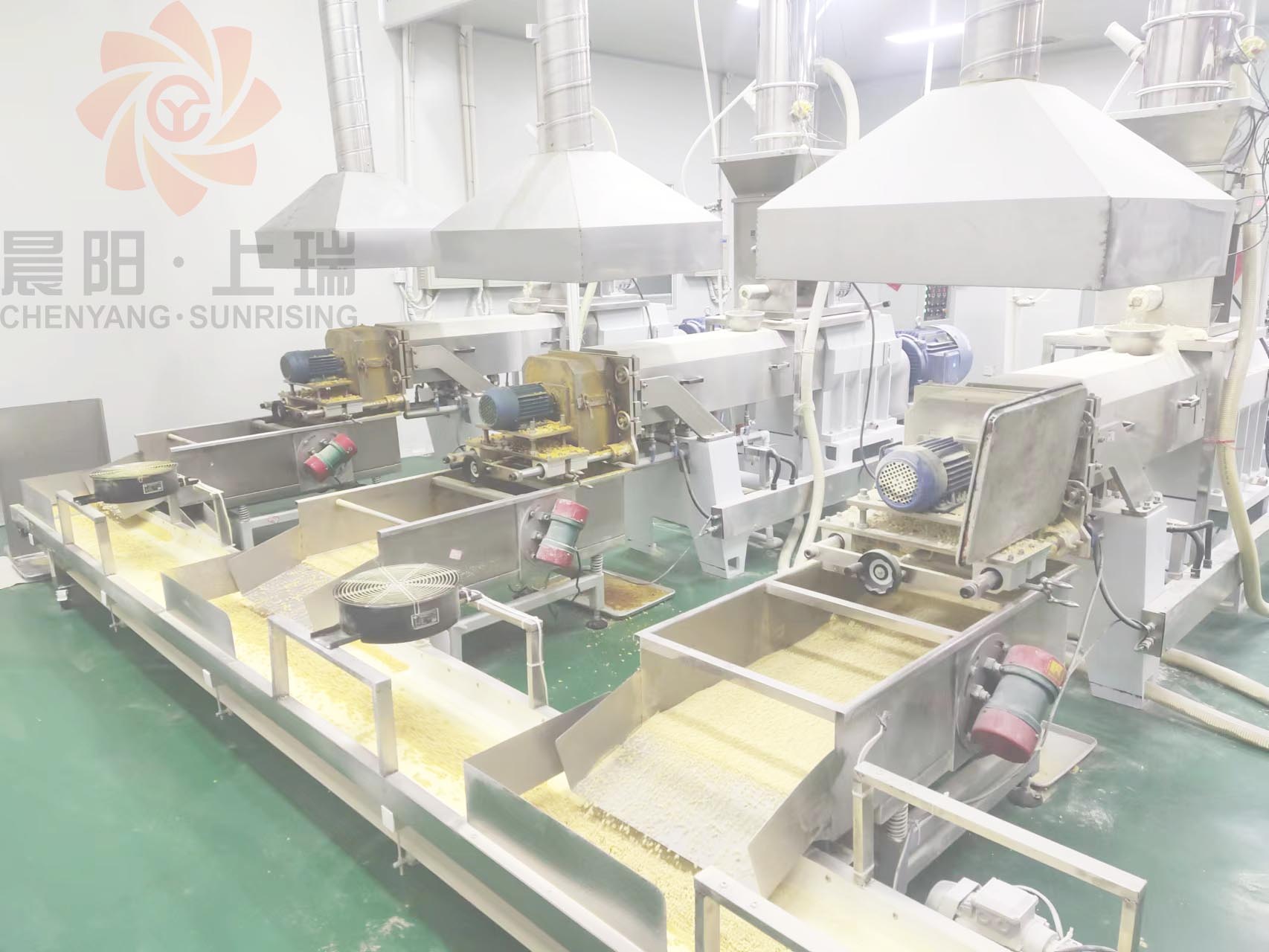 客戶因早餐營養(yǎng)粉(沖調類營養(yǎng)粉)市場需求不斷增加,產能需求日益旺盛增加,與晨陽分多次訂購營養(yǎng)粉加工膨化設備,為保證產品的高質量生產,客戶生產車間使用無塵凈化車間。采用濟南晨陽自主研發(fā)的新型62雙螺桿膨化機,本型號的機器單機產能300公斤每小時,本機型運行穩(wěn)定,產品質量在同行業(yè)排在前端,客戶用該機型24小時不間斷連續(xù)運行,單機日產能7.2噸。該機型在客戶工廠經住考驗,得到客戶的充分肯定。在日產7噸的產能下已經復制6臺機器,擴產到日產能到45噸,產能和質量的穩(wěn)定在同行業(yè)已經達到頂端??蛻舾鶕?jù)市場需求,已經在研產新的生產線,規(guī)劃未來,未雨綢繆!感謝客戶的信任,我們將一如既往的用熱情的服務和更高的質量回饋客戶嗎,合作共贏,同謀發(fā)展!