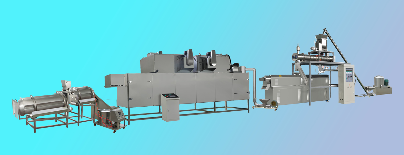 自動(dòng)生產(chǎn)線工藝從、粉碎、混合、膨化、烘干、噴涂、冷卻、包裝流水線運(yùn)行,