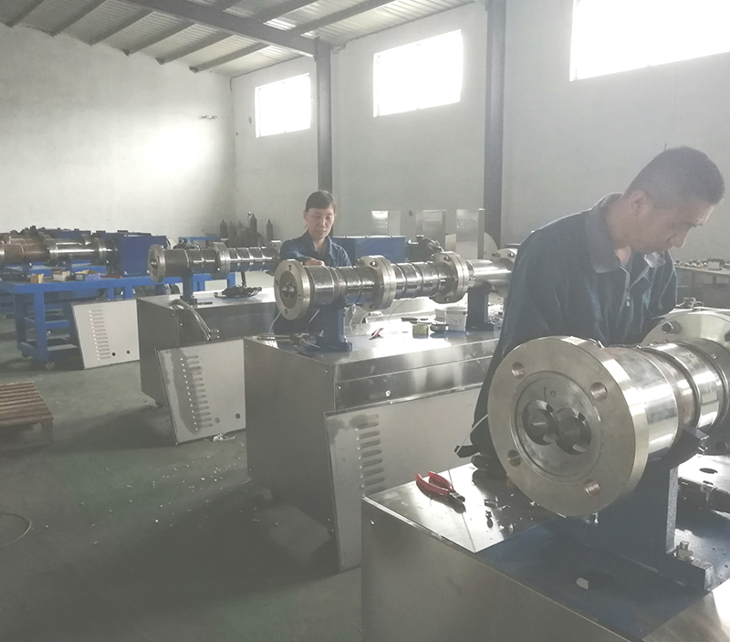 (2)擠出系統(tǒng): 由螺桿,機(jī)筒,連接段組成; 螺桿為38crmoal材料,滲氮深度5mm,耐磨耐用,機(jī)筒為國(guó)標(biāo)45號(hào)鋼,與螺桿配合間隙控制在0.5mm以內(nèi)