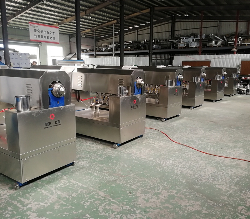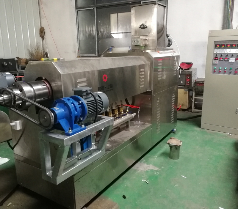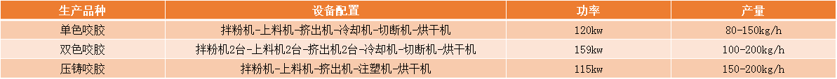 直接擠出型咬膠主要加工條狀、棒狀雙色咬膠,其形狀通過磨具擠壓后直接定型,通過切斷機(jī)切斷后達(dá)到要求的理想尺寸。其形狀根據(jù)產(chǎn)品要求開模,五角星、五棱、六棱、十字、狗骨頭,、雙色熊掌、五花肉等形狀等。