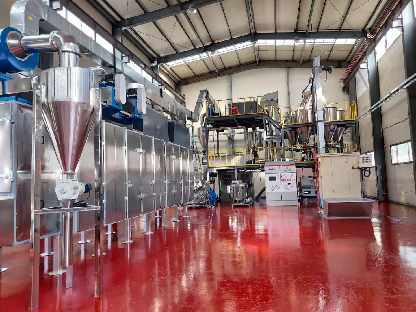 技術(shù)方面寵物食品生產(chǎn)線設計自動配料混合粉碎系統(tǒng)、雙螺桿擠壓膨化機、環(huán)流帶式干燥機,真空噴涂機,運行設有自動控制中心。整套設備全部自動運行。降低勞工成本投入,低成本,高產(chǎn)能。