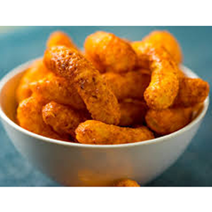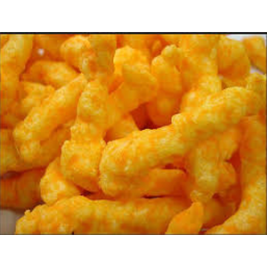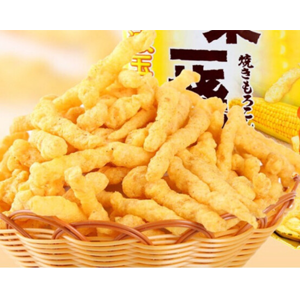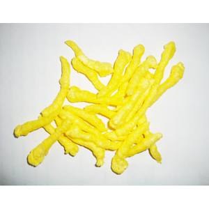 奇多是一種特殊的擠壓膨化型小食品,玉米糝進(jìn)入旋轉(zhuǎn)頭擠壓機(jī)中,在擠壓機(jī)兩個轉(zhuǎn)盤的 擠壓與揉搓作用下,玉米糝形成不規(guī)則的扭曲形狀,然后切刀將其切成所需長度的產(chǎn)品。奇多可以油炸后調(diào)味,也可焙烤后調(diào)味,因 其美味而深受消費(fèi)者歡迎。