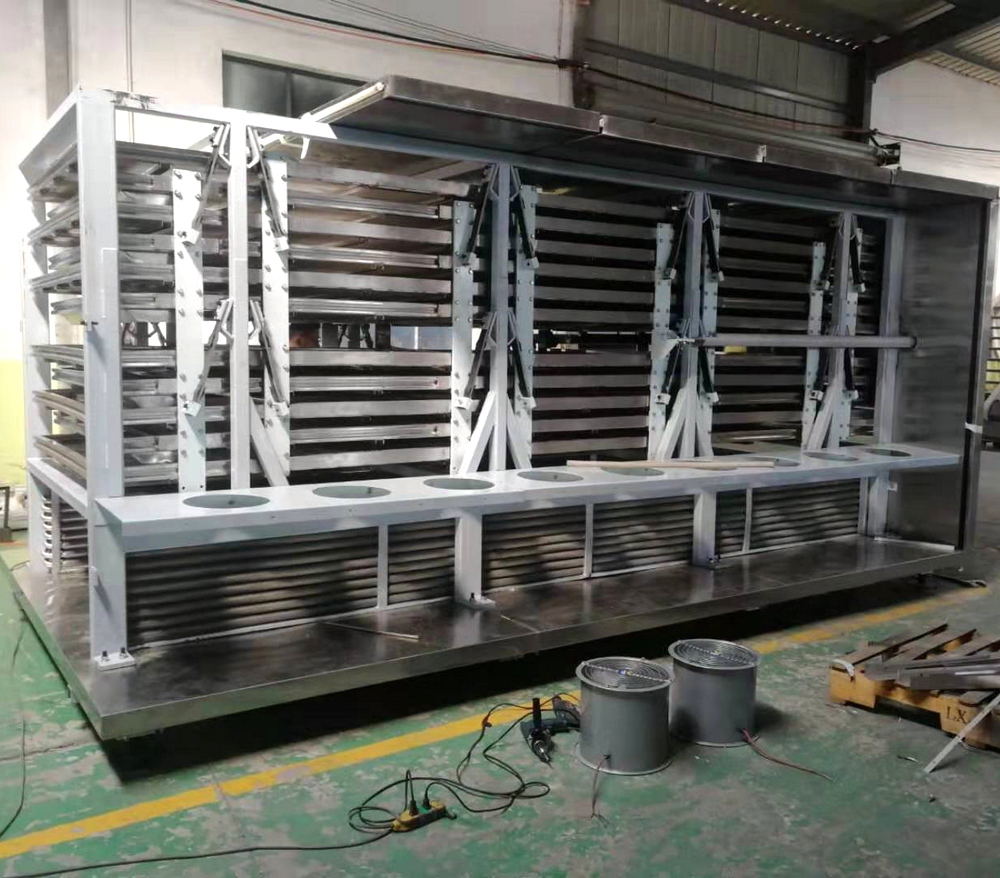 干燥時(shí)物料從設(shè)備頂部的加料口進(jìn)入,在振動(dòng)和自身重力的作用下,物料從上層自下層往復(fù)移動(dòng),后從底層的出料口排出。熱空氣從底層進(jìn)入,穿過(guò)帶孔床層往動(dòng),同時(shí)與床層上的物料進(jìn)行充分的傳熱和傳質(zhì),后通過(guò)頂部的排濕口排出。
