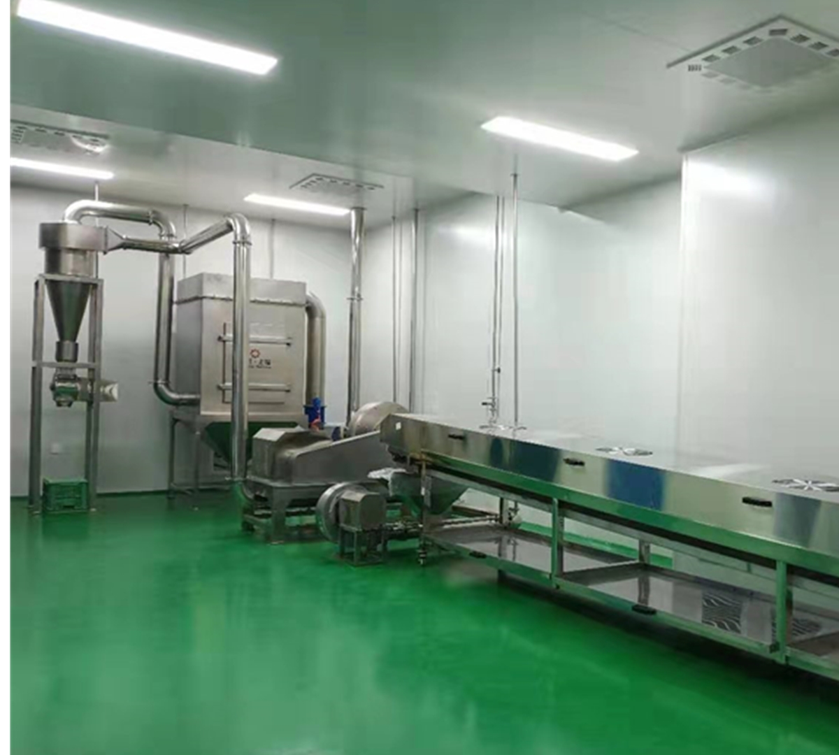 自吸進(jìn)料管道及料斗、粉碎機(jī)主機(jī)、薩克龍關(guān)風(fēng)機(jī)卸料器、箱式除塵器、脈沖器、引風(fēng)機(jī)、排風(fēng)管道、控制電柜